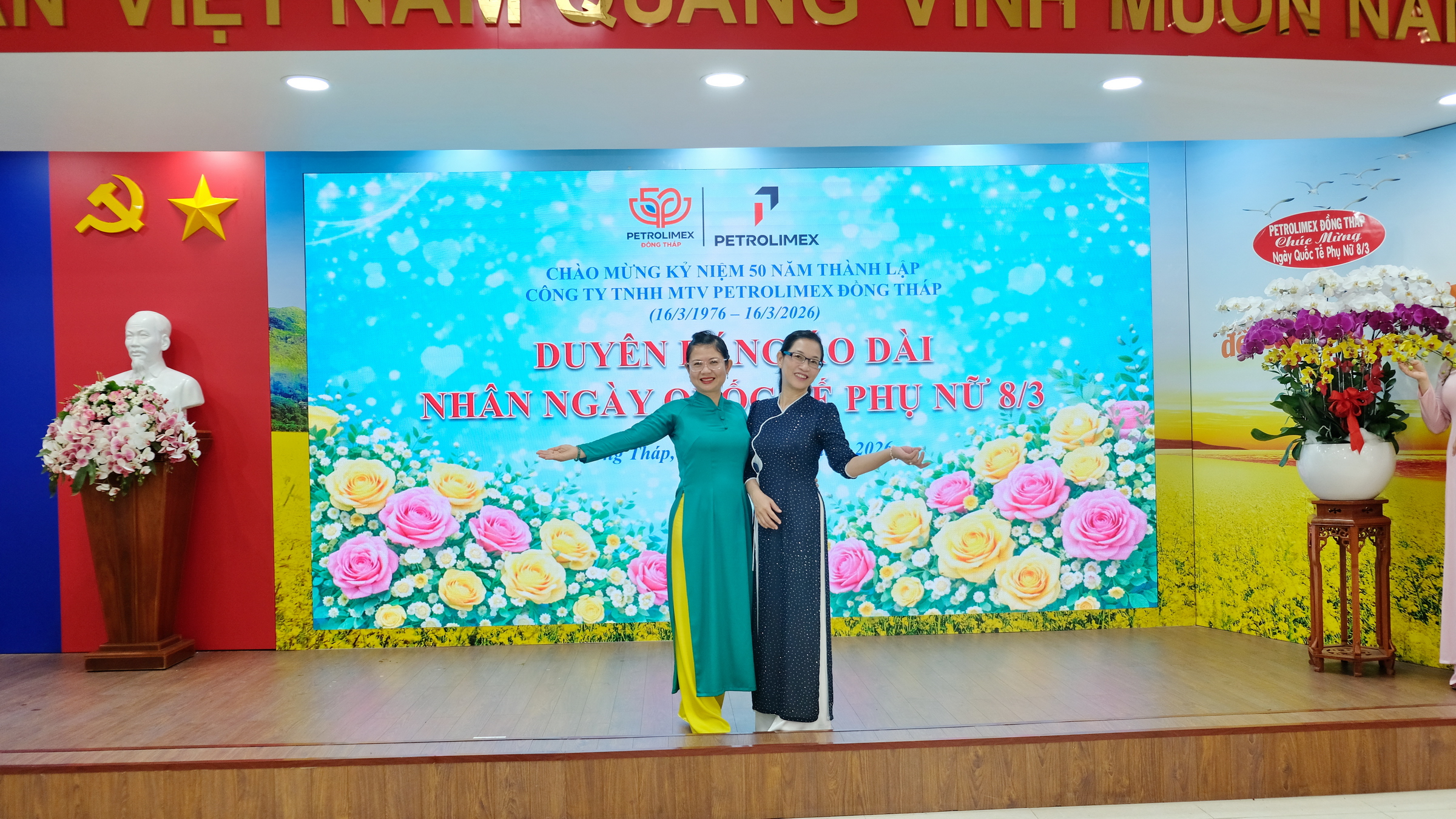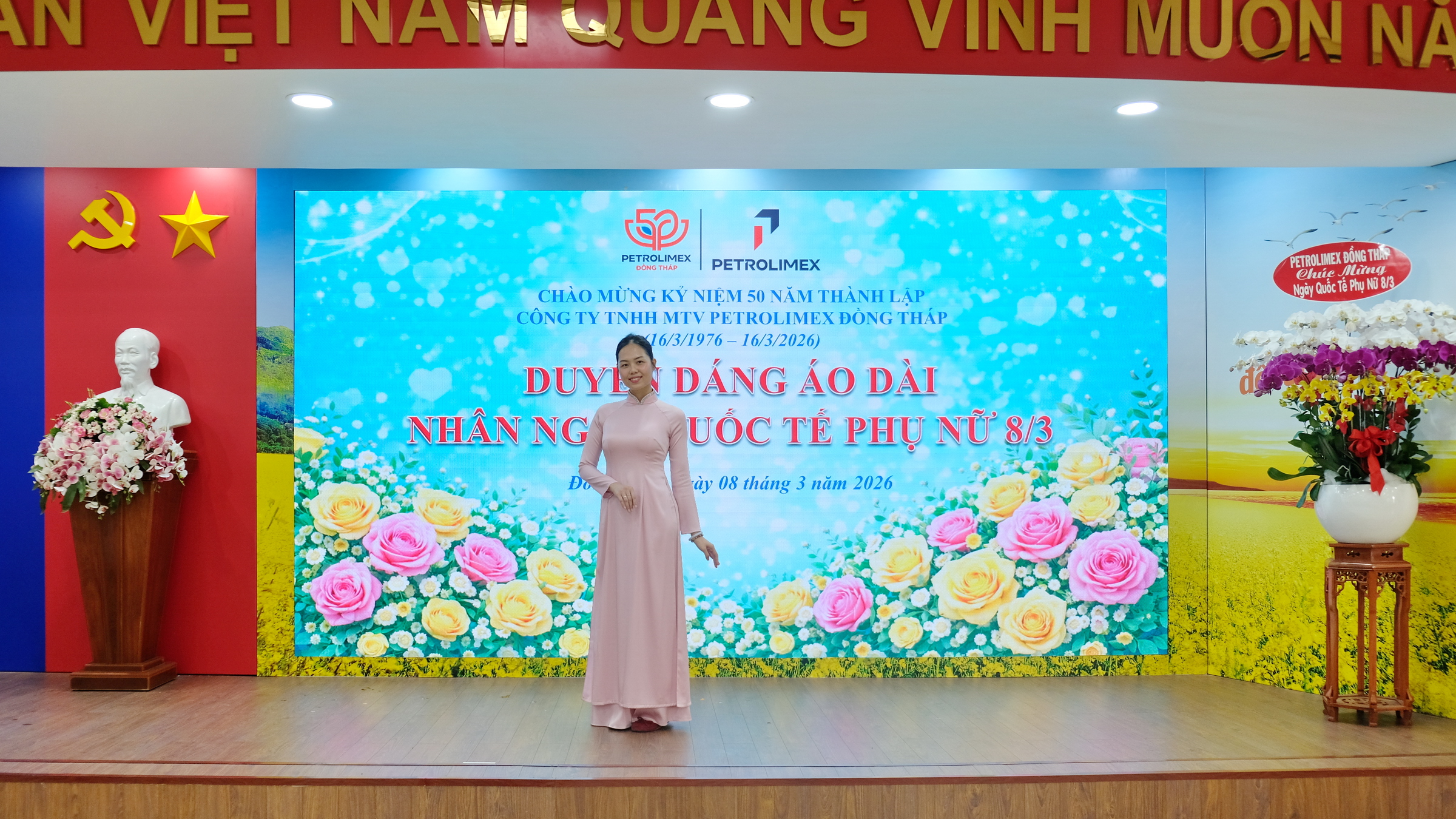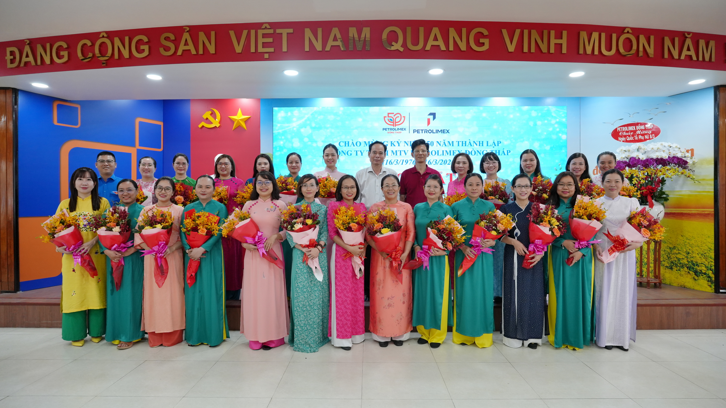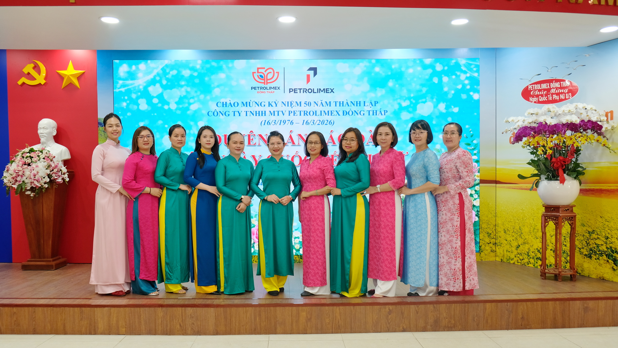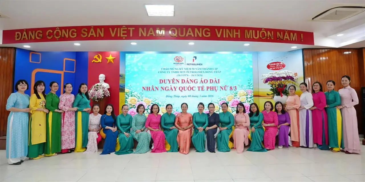 Nhân dịp này, Petrolimex Đồng Tháp gửi lời chúc toàn thể nữ cán bộ công nhân viên luôn mạnh khỏe, hạnh phúc, thành công và tiếp tục phát huy năng lực, đóng góp tích cực cho sự phát triển của đơn vị, góp phần xây dựng phẩm chất đạo đức truyền thống tốt đẹp của phụ nữ Việt Nam thời đại ngày nay “Tự trọng - Tự tin - Đảm đang - Trung hậu”.