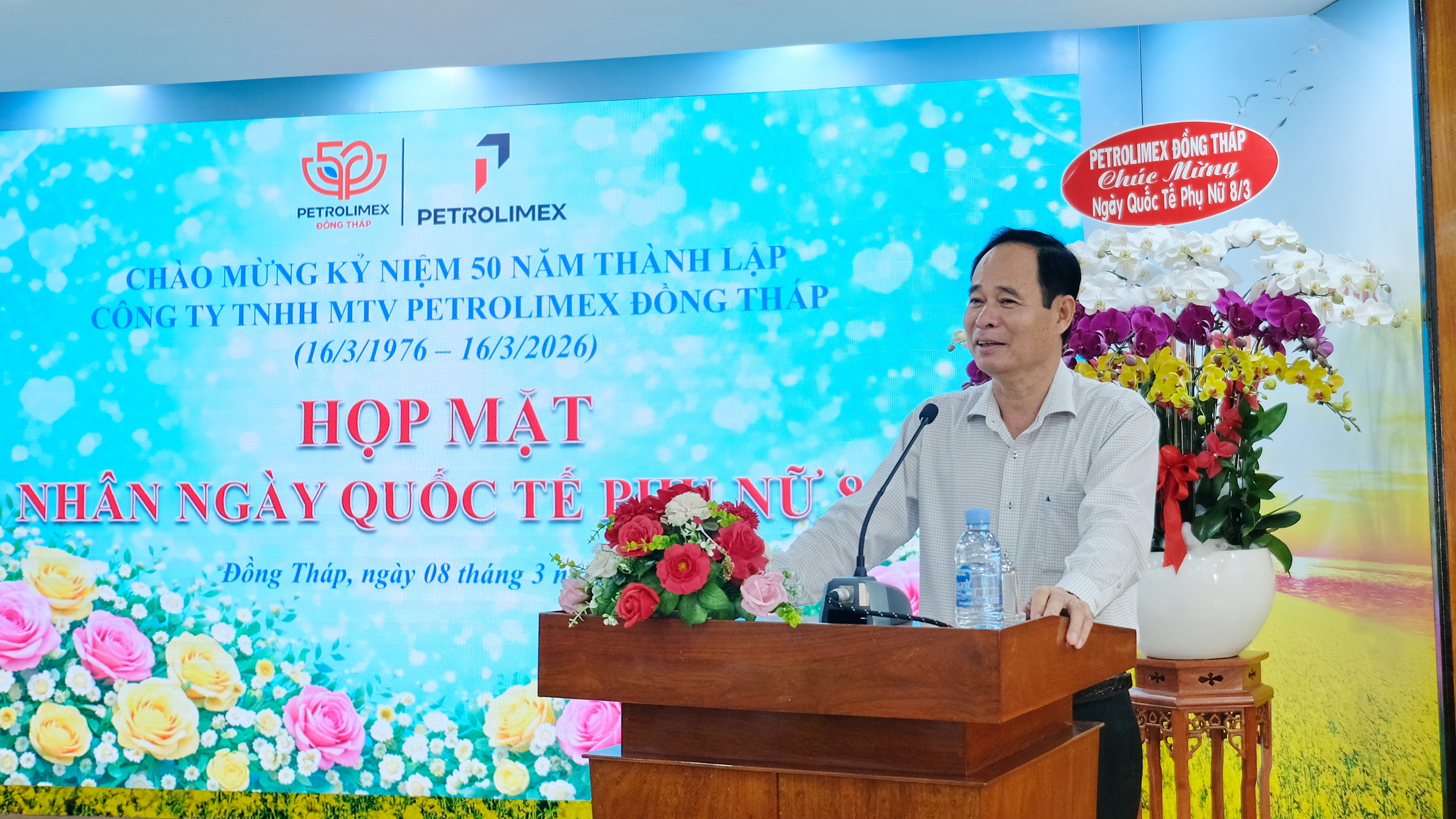Tham dự chương trình có Ban lãnh đạo Công ty, đại diện các tổ chức đoàn thể cùng nữ cán bộ công nhân viên. Tại buổi gặp mặt, Chủ tịch Công ty Phan Thanh Tâm đã gửi lời chúc mừng tốt đẹp đến toàn thể nữ CBCNV nhân dịp 8/3, đồng thời ghi nhận và đánh giá cao những đóng góp tích cực của chị em trong quá trình công tác. Lãnh đạo Công ty bày tỏ sự trân trọng đối với hình ảnh người phụ nữ Petrolimex Đồng Tháp không chỉ duyên dáng, đảm đang mà còn năng động, bản lĩnh, tận tâm trong công việc, luôn nỗ lực hoàn thành tốt nhiệm vụ và góp phần quan trọng vào sự phát triển chung của toàn Công ty.